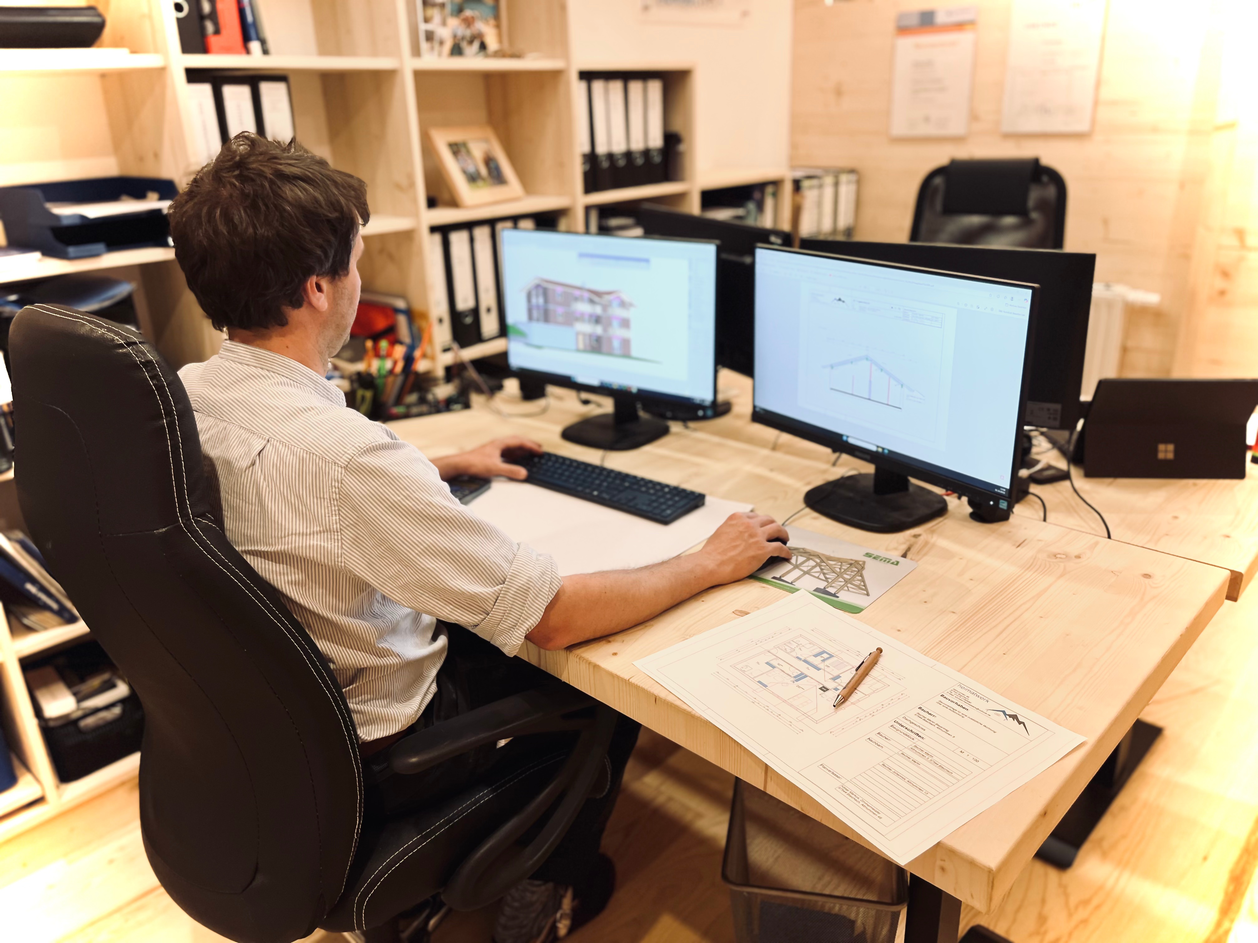 heimatwerk ist Ihr zuverlässiger Partner für ganzheitliche Bauplanung. Von den ersten Entwurfsskizzen bis hin zur präzisen Werkplanung erhalten Sie bei uns sämtliche Planungsleistungen aus einer Hand. Auf Wunsch übernehmen wir zudem die Bauleitung bis zur fertiggestellten Rohbauphase – für eine nahtlose, verlässliche Begleitung Ihres Bauvorhabens.